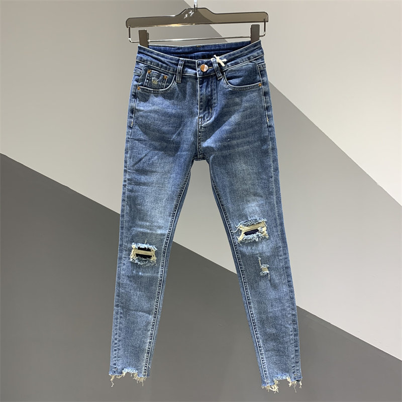 - 女装破洞牛仔裤小脚裤
