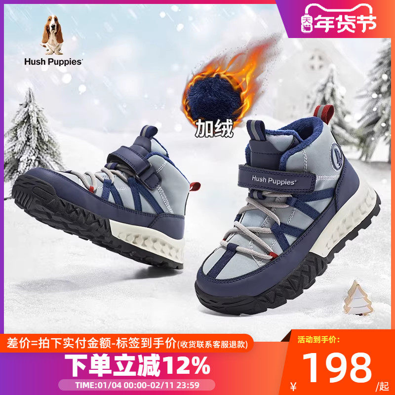 暇步士童鞋儿童棉鞋冬季棉靴男童运动鞋儿童户外加绒保暖雪地靴男