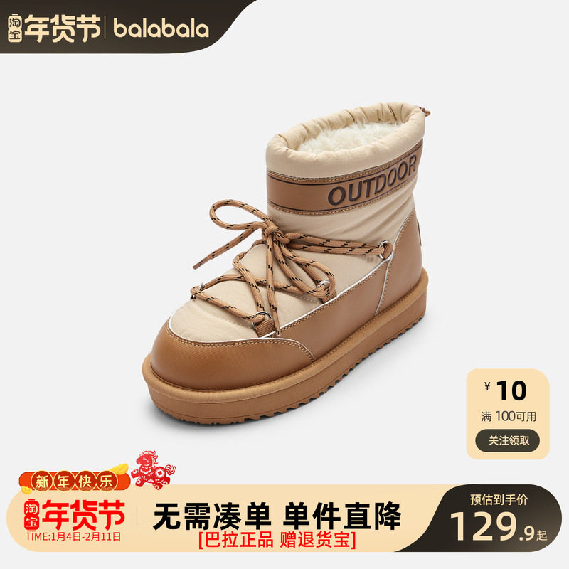 巴拉巴拉童鞋雪地靴男童女童加绒加厚儿童棉靴冬2026新款靴子户外