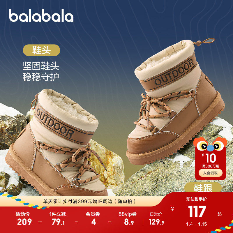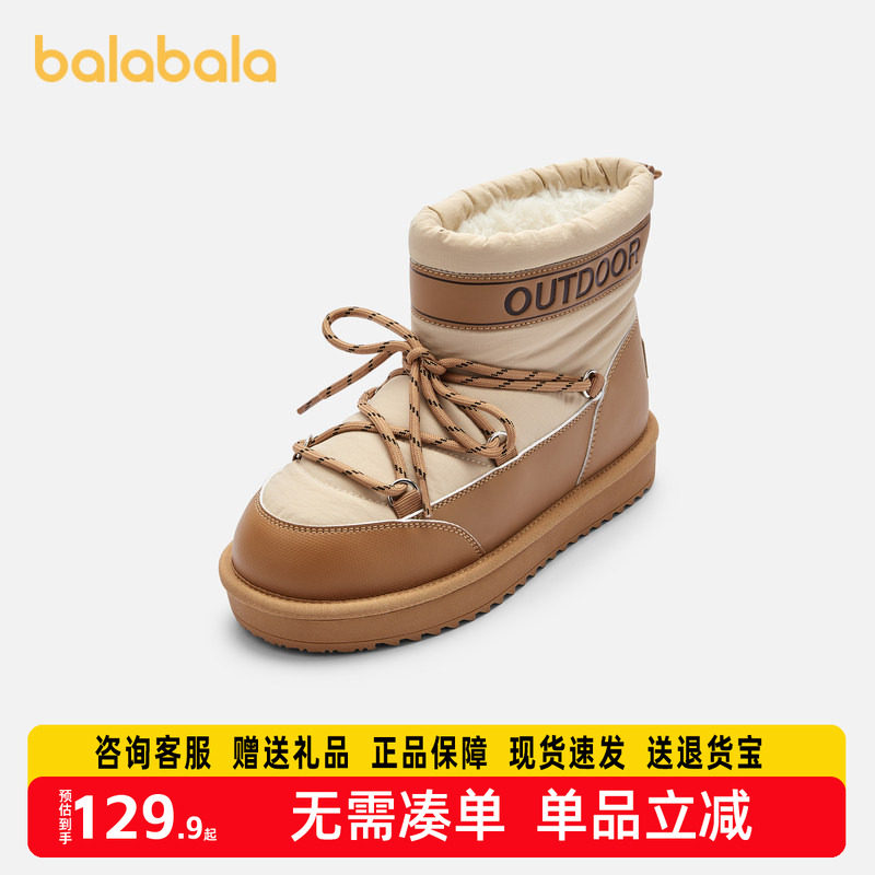 巴拉巴拉童鞋儿童雪地靴男女童短靴加厚加绒棉靴2025新冬靴子防滑