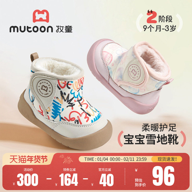 牧童童鞋涂鸦宝宝雪地靴男童2025冬季新款加厚加绒保暖女童大棉鞋