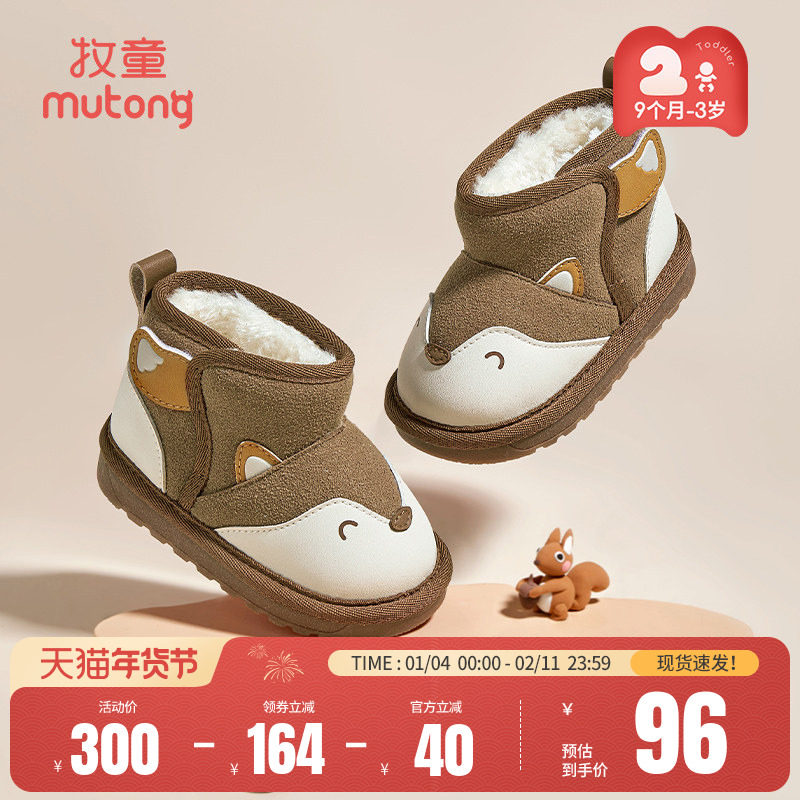 牧童宝宝雪地靴冬季新款小松鼠女童软底加绒婴儿大棉鞋保暖男童鞋