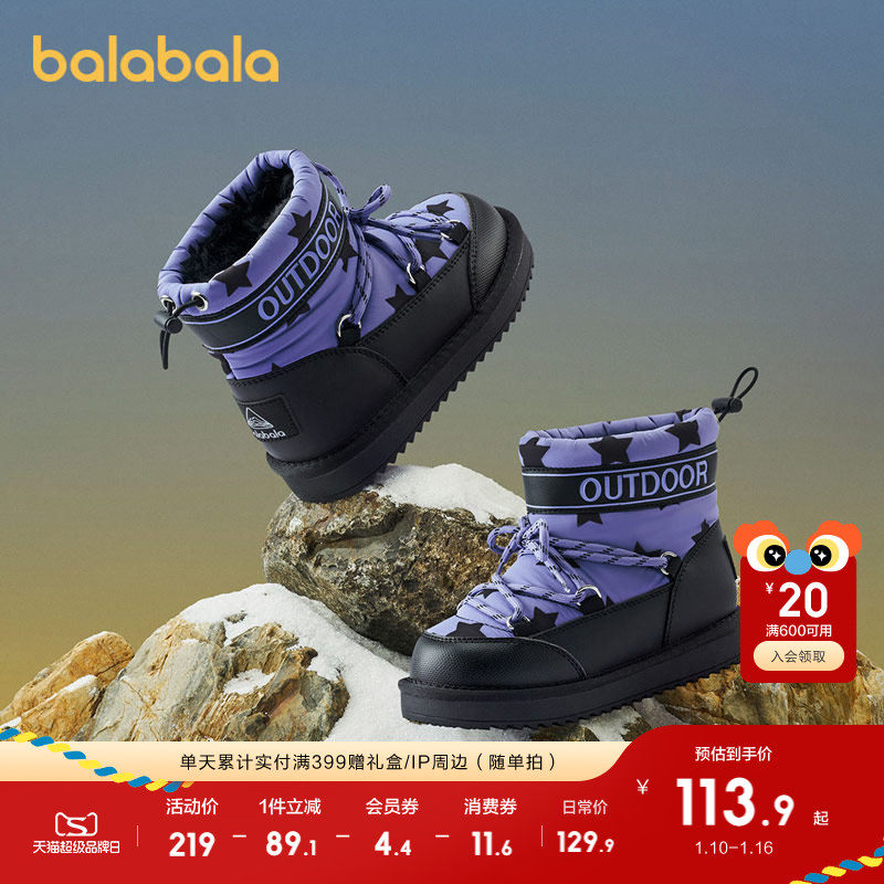 巴拉巴拉童鞋雪地靴男童女童加绒加厚儿童棉靴冬潮流靴子户外舒适