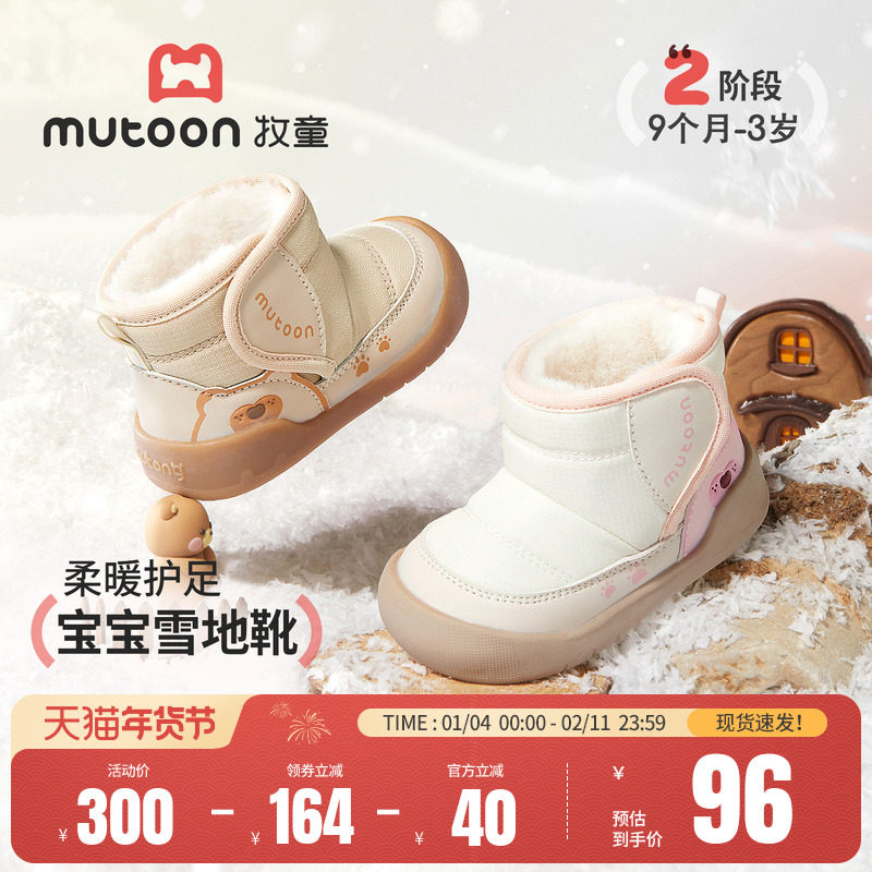牧童童鞋宝宝雪地靴2025冬季新款男童软底卡通小熊加绒女童大棉鞋