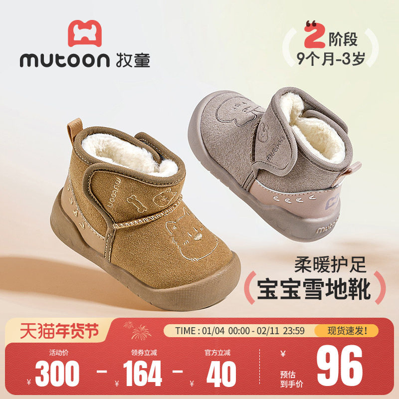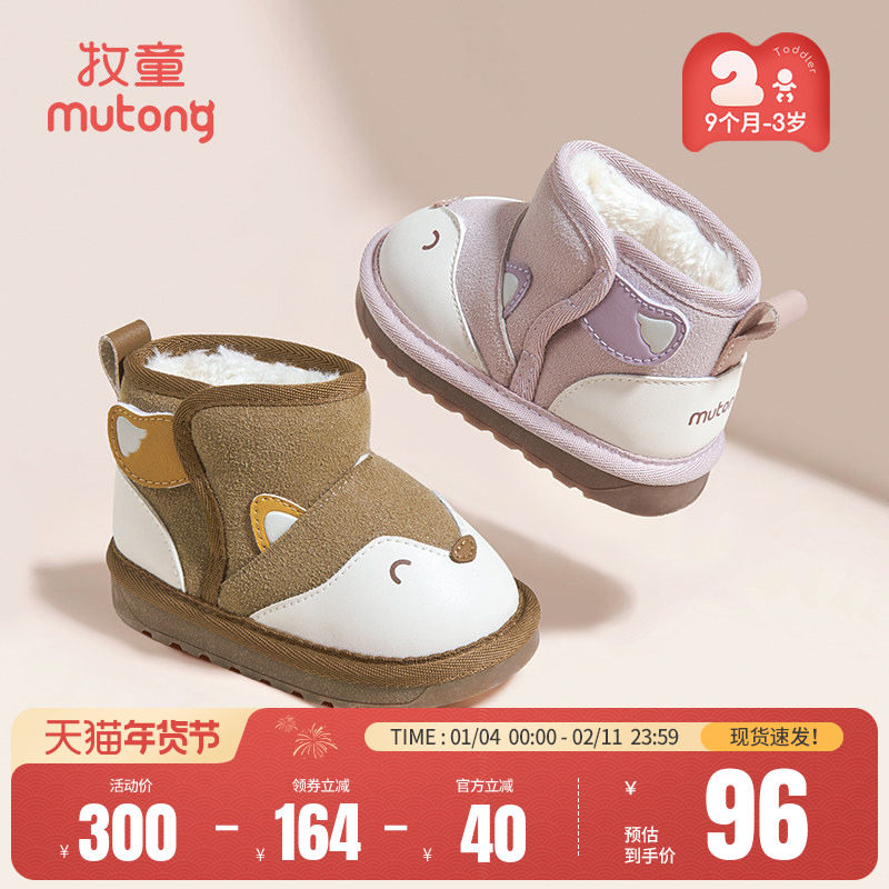 牧童童鞋宝宝雪地靴男童2025冬季新款卡通软底女童加厚保暖大棉鞋