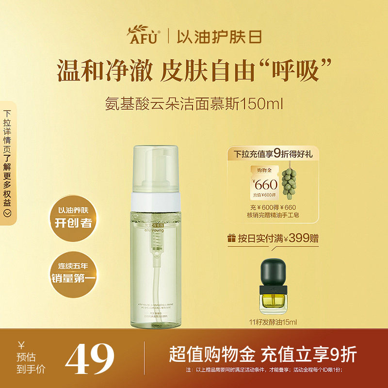 阿芙氨基酸云朵洁面慕斯泡沫洗面奶女卸妆二合一有效清洁控油黑头