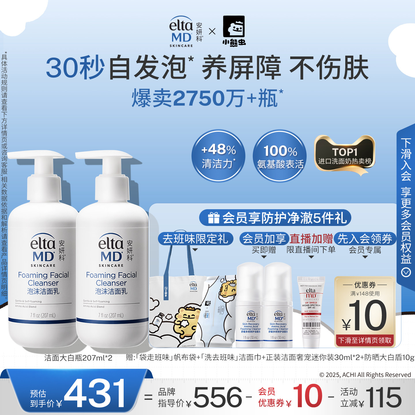 eltamd安妍科氨基酸泡沫洗面奶女温和保湿控油深层清洁洁面乳敏肌