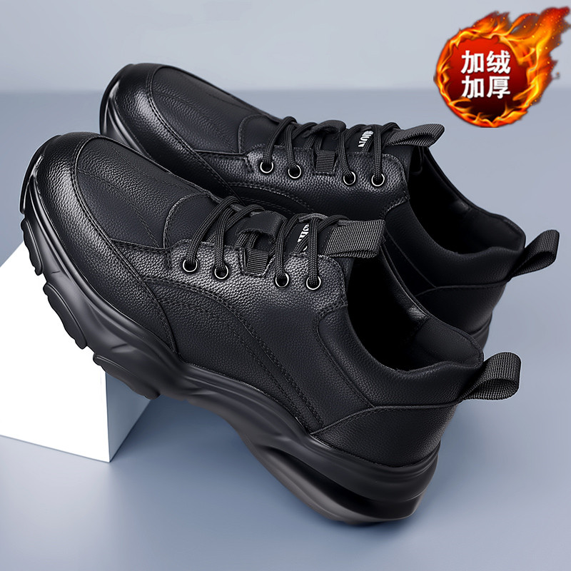 梦特娇头层牛皮秋冬2025新款厚底运动休闲鞋全黑软底商务工作皮鞋