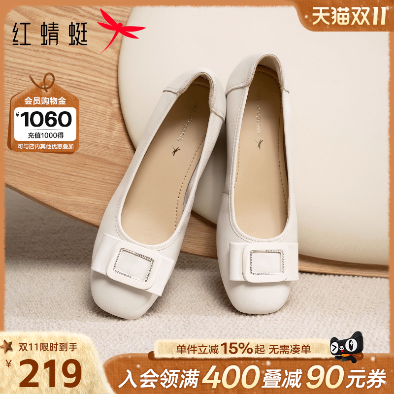 红蜻蜓单鞋女秋季新款女鞋真皮舒适软底工作皮鞋中老年鞋子妈妈鞋