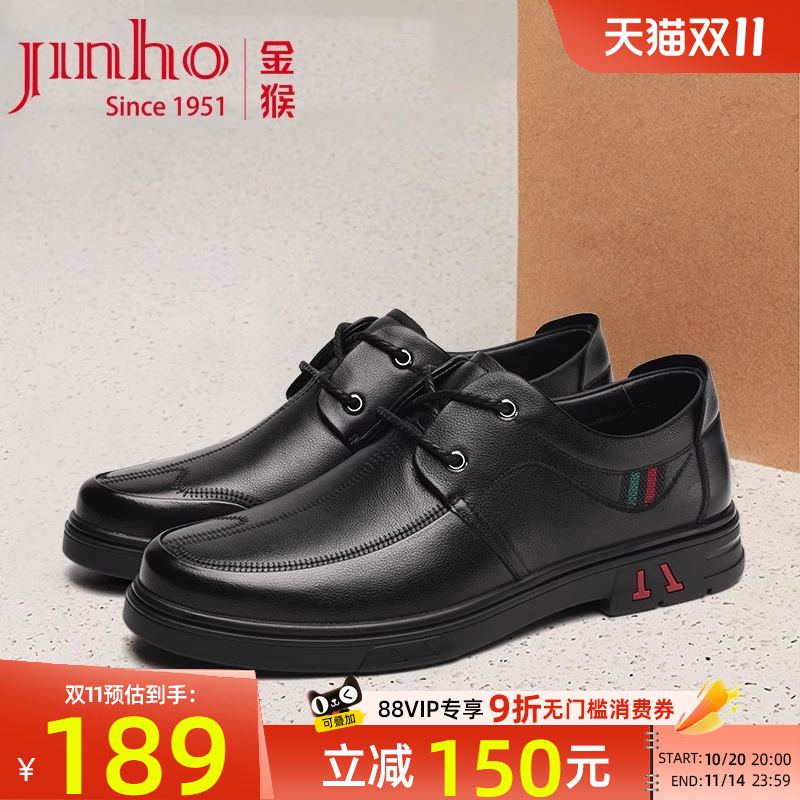 金猴皮鞋男秋季正装皮鞋男牛皮黑色套脚商务鞋男士工作皮鞋大码鞋