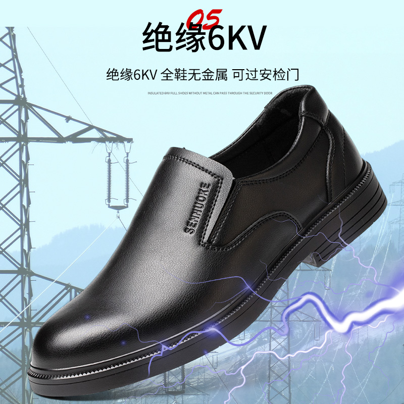 高端电工鞋劳保鞋男士防刺穿绝缘鞋办公室行政工作皮鞋保安一脚蹬