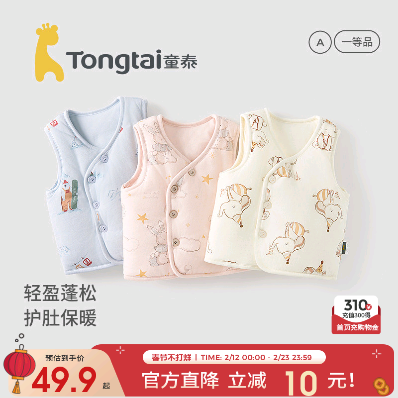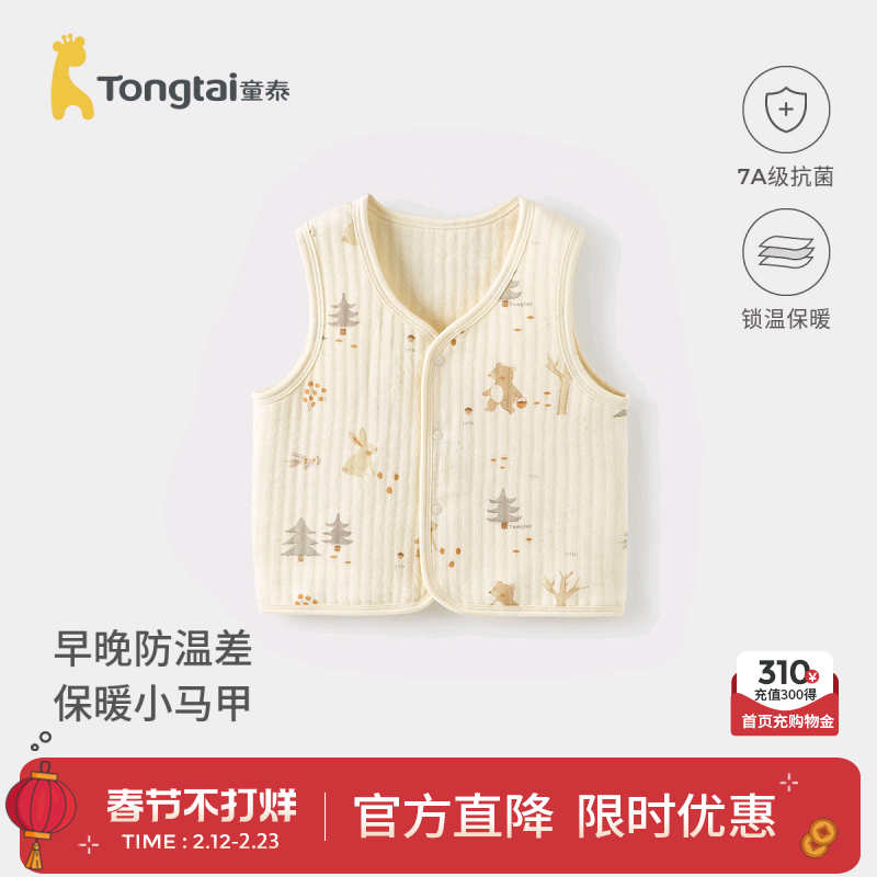 童泰婴儿马甲秋冬纯棉夹棉男女宝宝衣服加厚背心坎肩马夹外出上衣