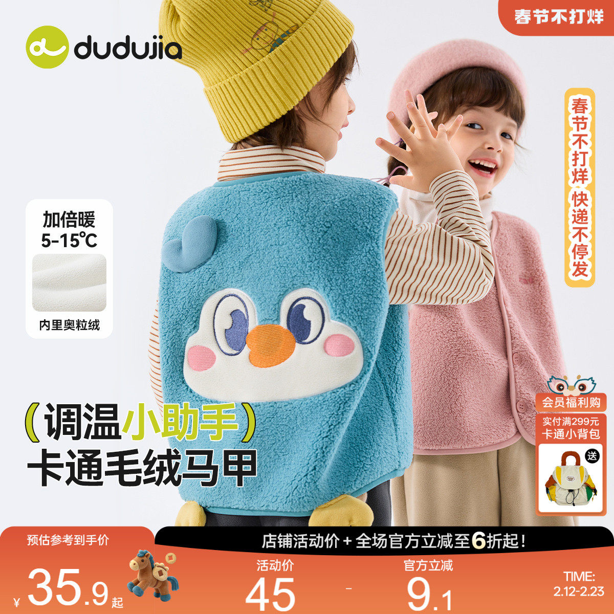 嘟嘟家宝宝马甲加绒冬季男童坎肩保暖秋冬儿童上衣加厚女童冬装小