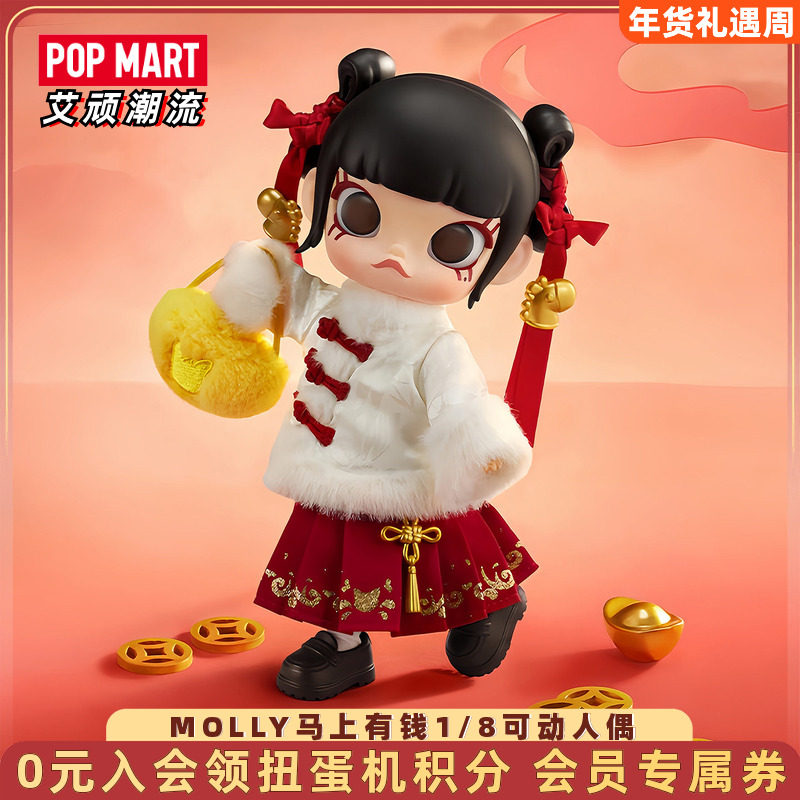 POPMART泡泡玛特MOLLY马上有钱1/8可动人偶娃娃潮玩摆件新年礼物