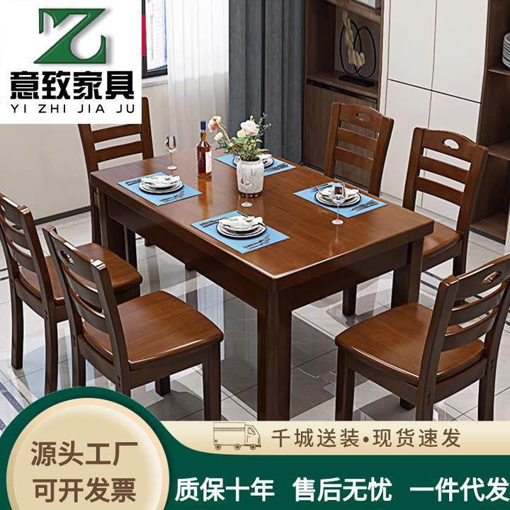 - 实木餐桌椅组合橡木