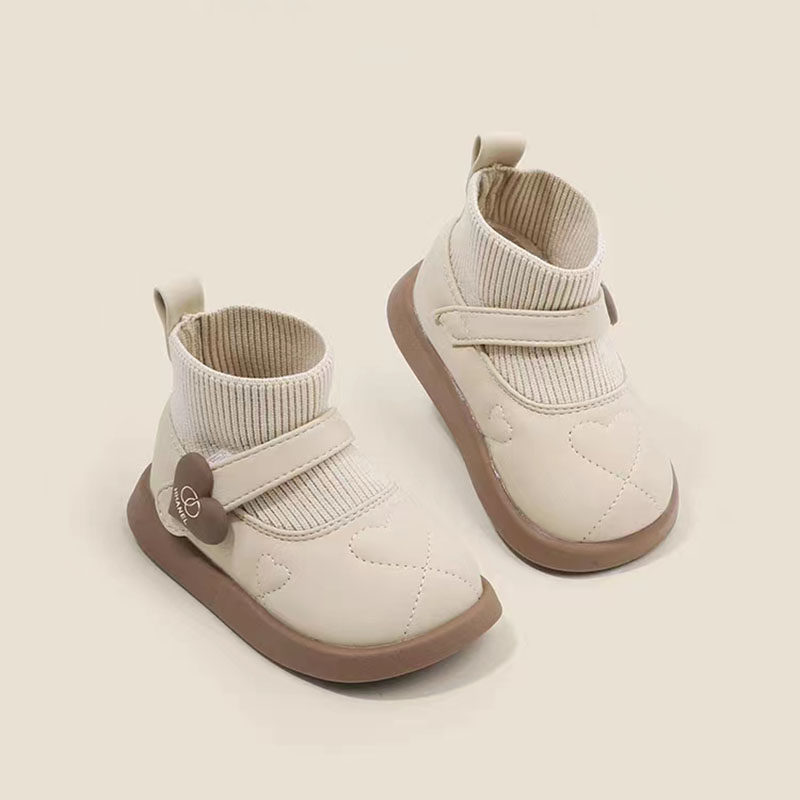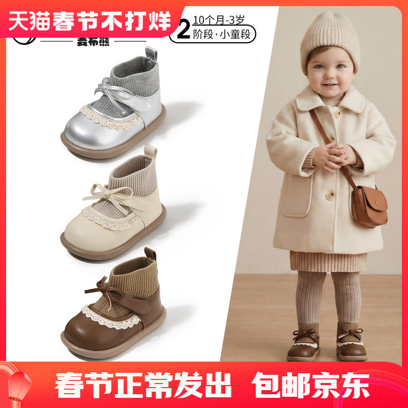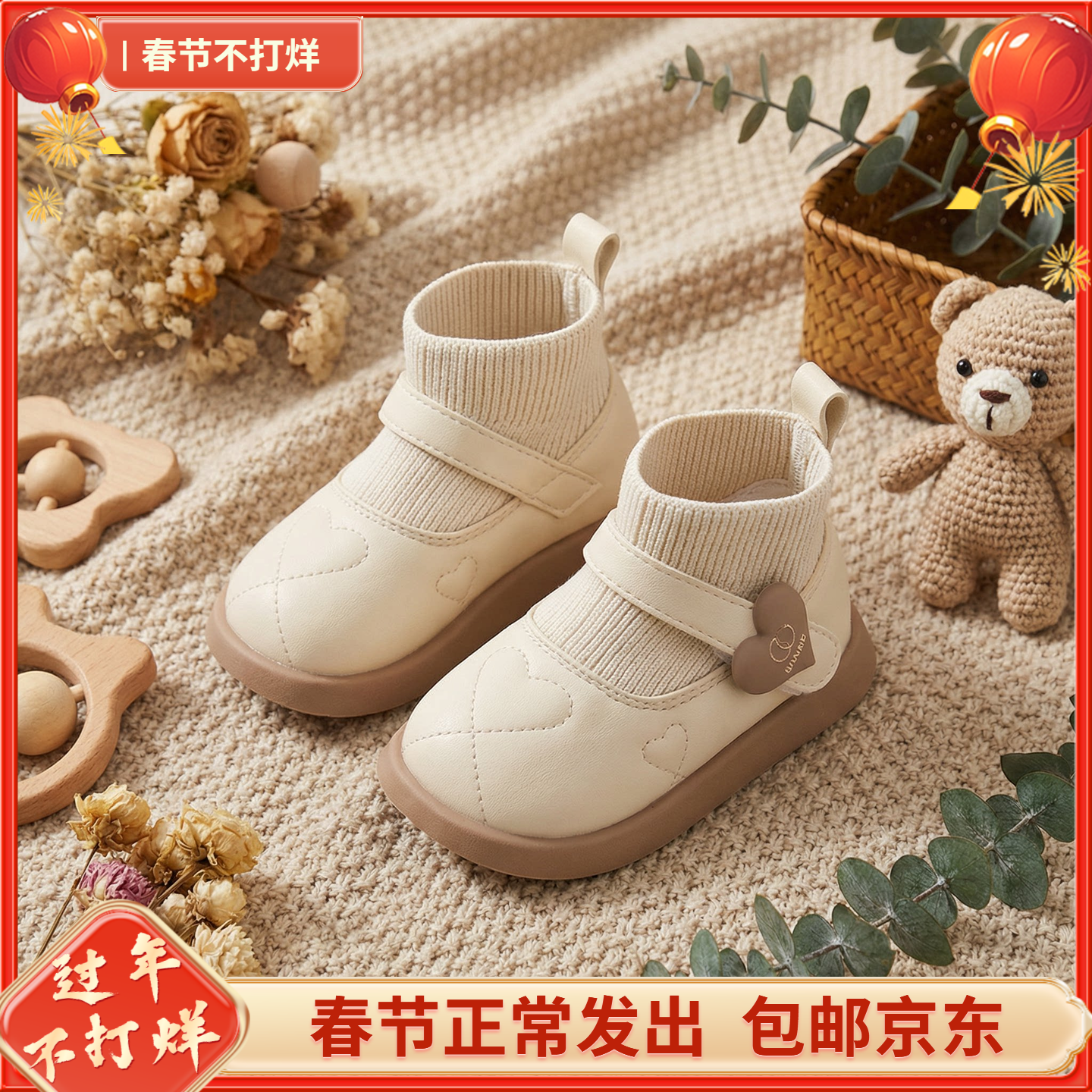 韩版女宝宝公主鞋婴幼儿学步鞋软底加绒女童秋冬袜子短靴小童皮鞋