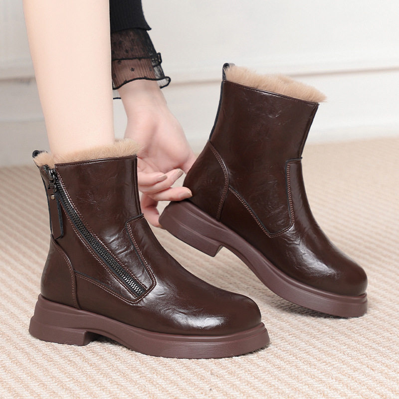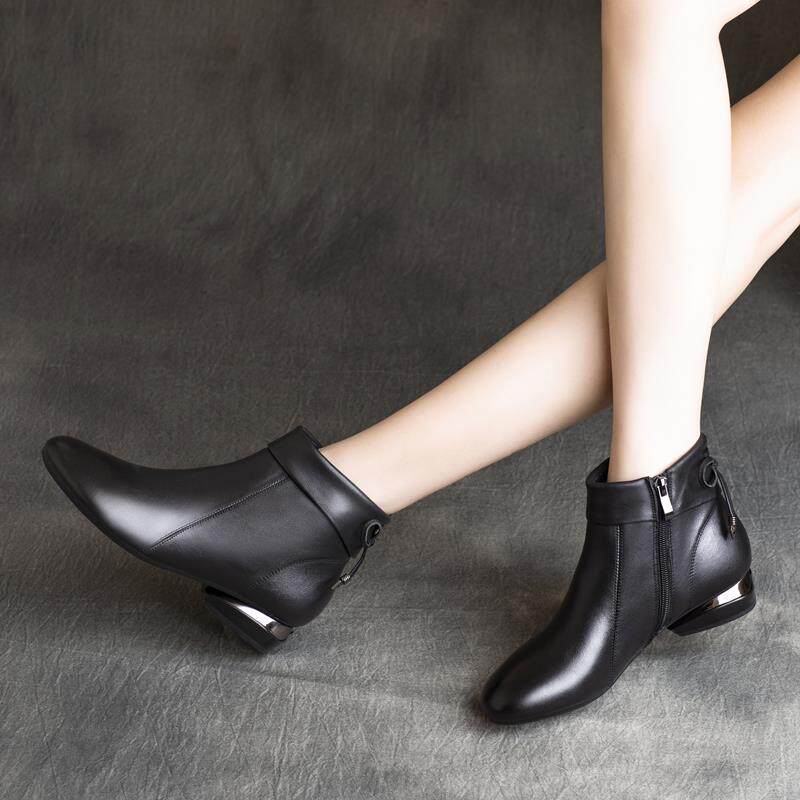 韩版潮牌低跟小短靴女秋冬新款软皮平底女鞋冬季加绒牛皮真皮鞋潮