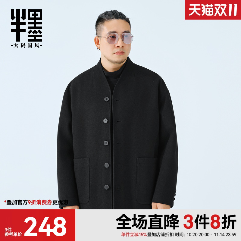 半墨大码男装新中式羊毛夹克男秋季新款复古唐装外套短款毛呢大衣