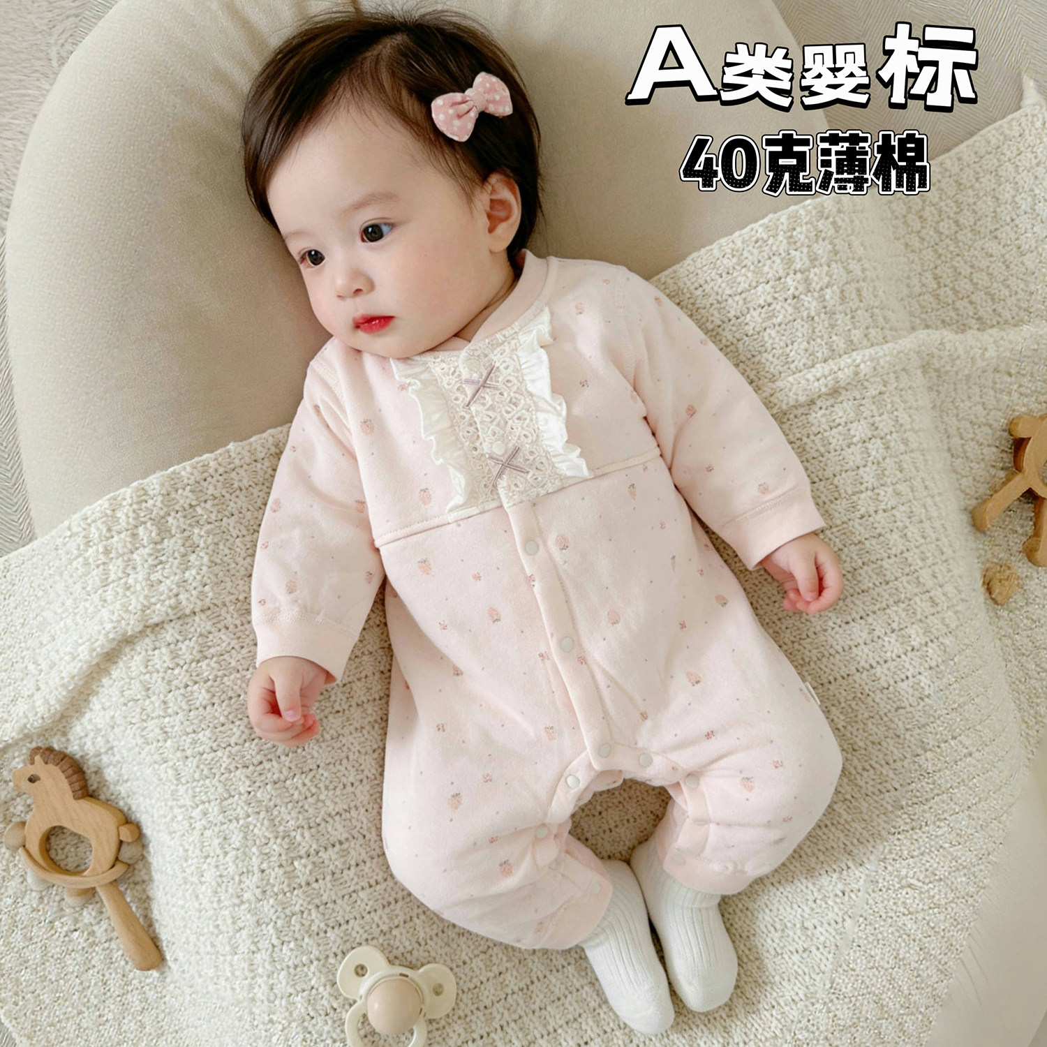 婴儿春装女宝宝衣服春秋连体衣春季哈衣满月百天甜美可爱薄款外套