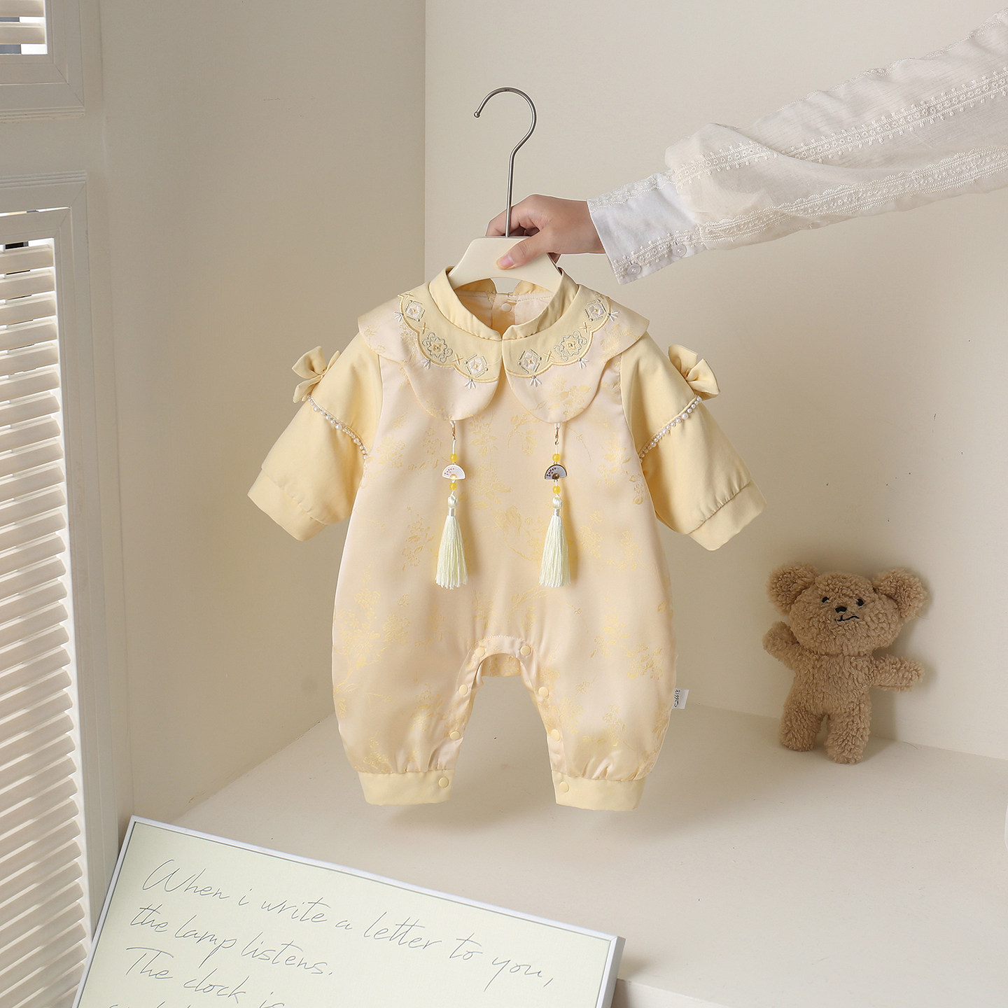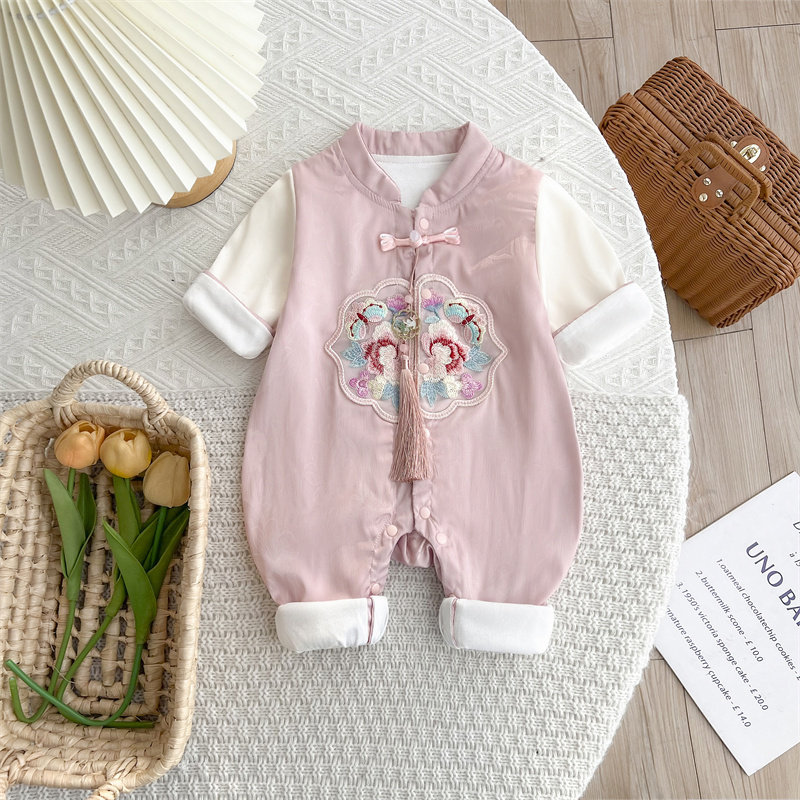 婴儿春装女宝宝百天衣服满月中式连体衣春秋款周岁礼服外出服春季
