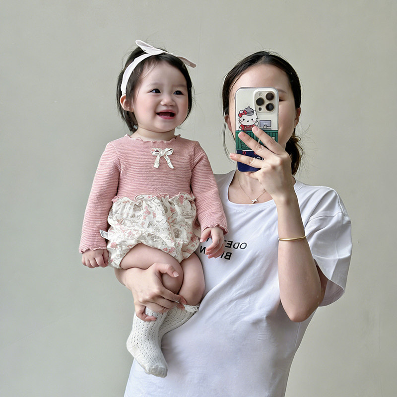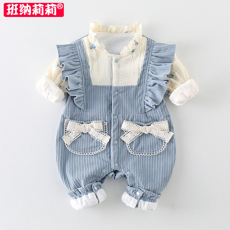 婴儿春装女宝宝衣服春秋洋气蝴蝶结韩版哈衣婴幼儿秋季双层连体衣