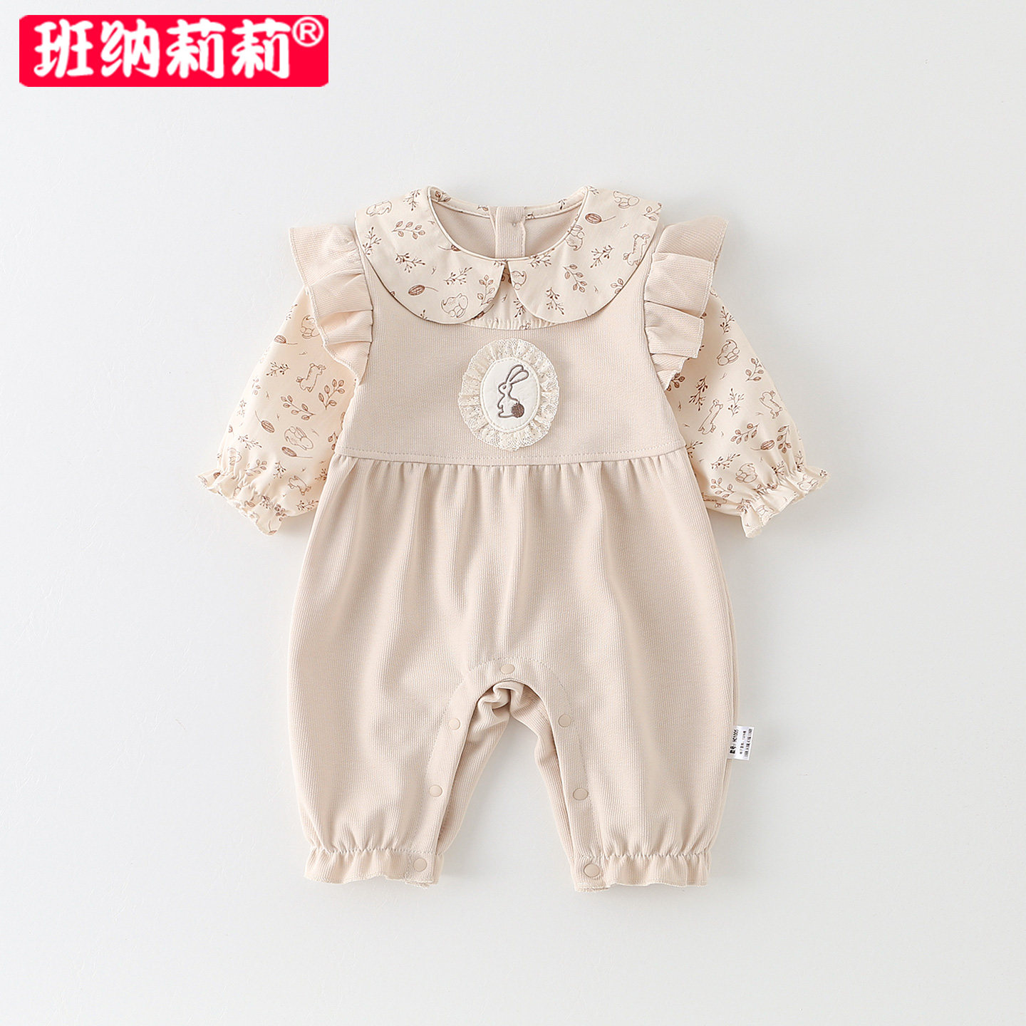 婴儿春装女宝宝春款衣服花边翻领哈衣新生儿连体衣春秋季外出爬服
