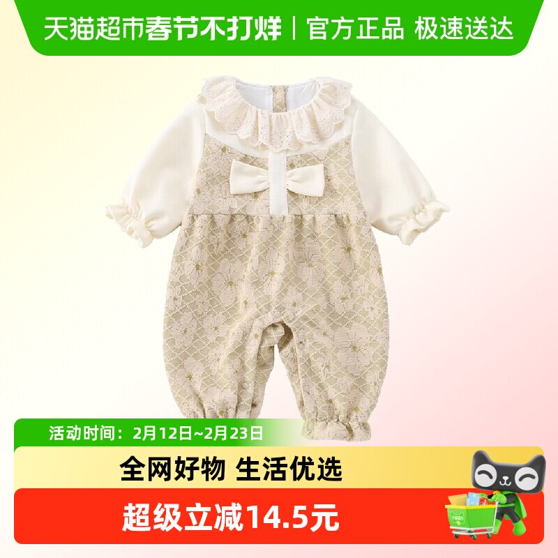 婴儿春装女宝宝连体衣服纯棉外出服薄棉衣哈衣爬服外穿洋气春秋冬