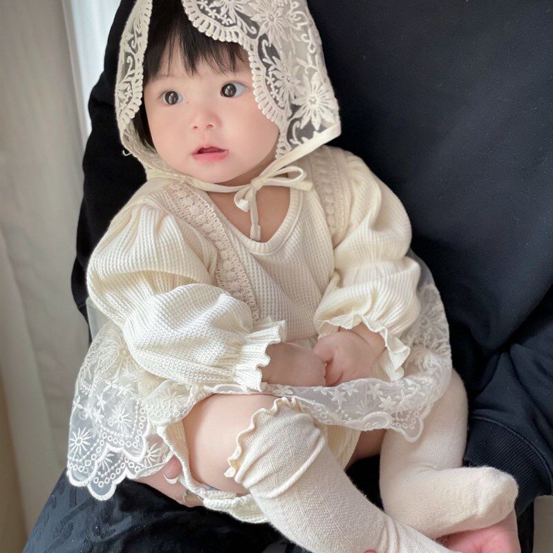 婴儿春装女宝洋气网纱包屁裙宝宝早春韩版时髦百日宴公主风哈衣潮