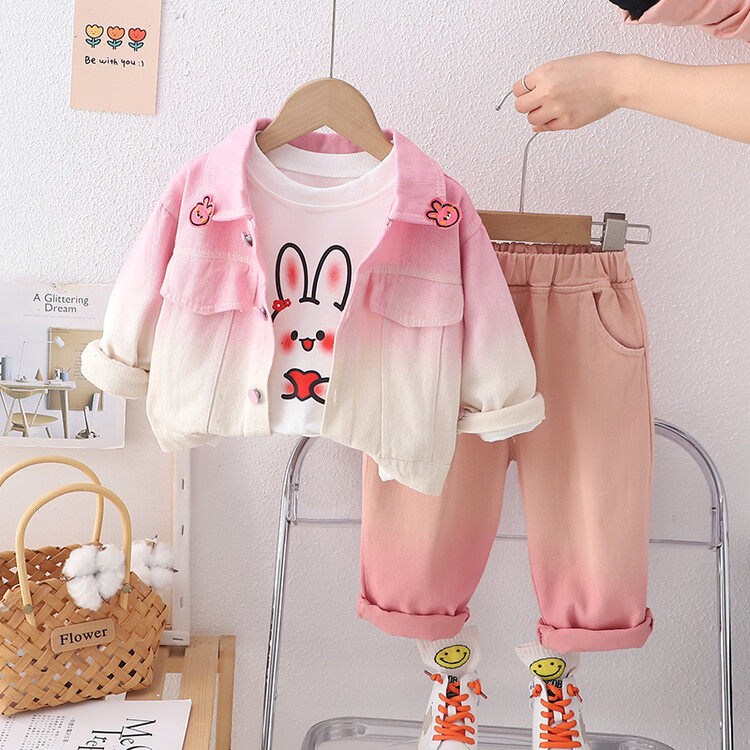 婴儿春装女宝宝春秋洋气套装1-3岁牛仔外套衣服4女童装时髦三件套