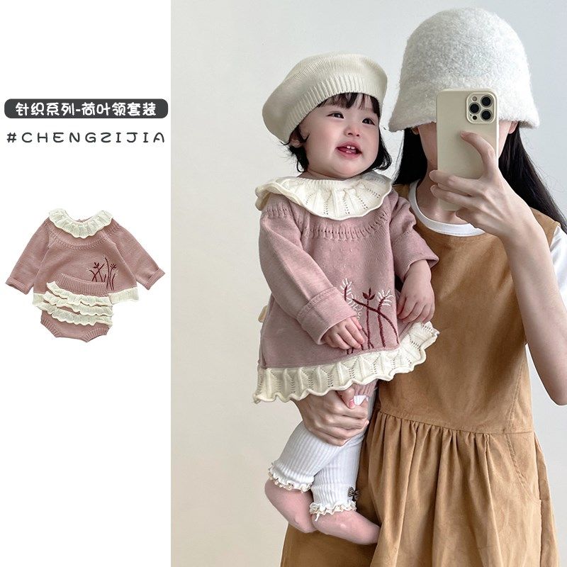 婴儿春装女宝宝针织手工毛衣春秋套装开衫女洋气时髦秋冬公主衣服