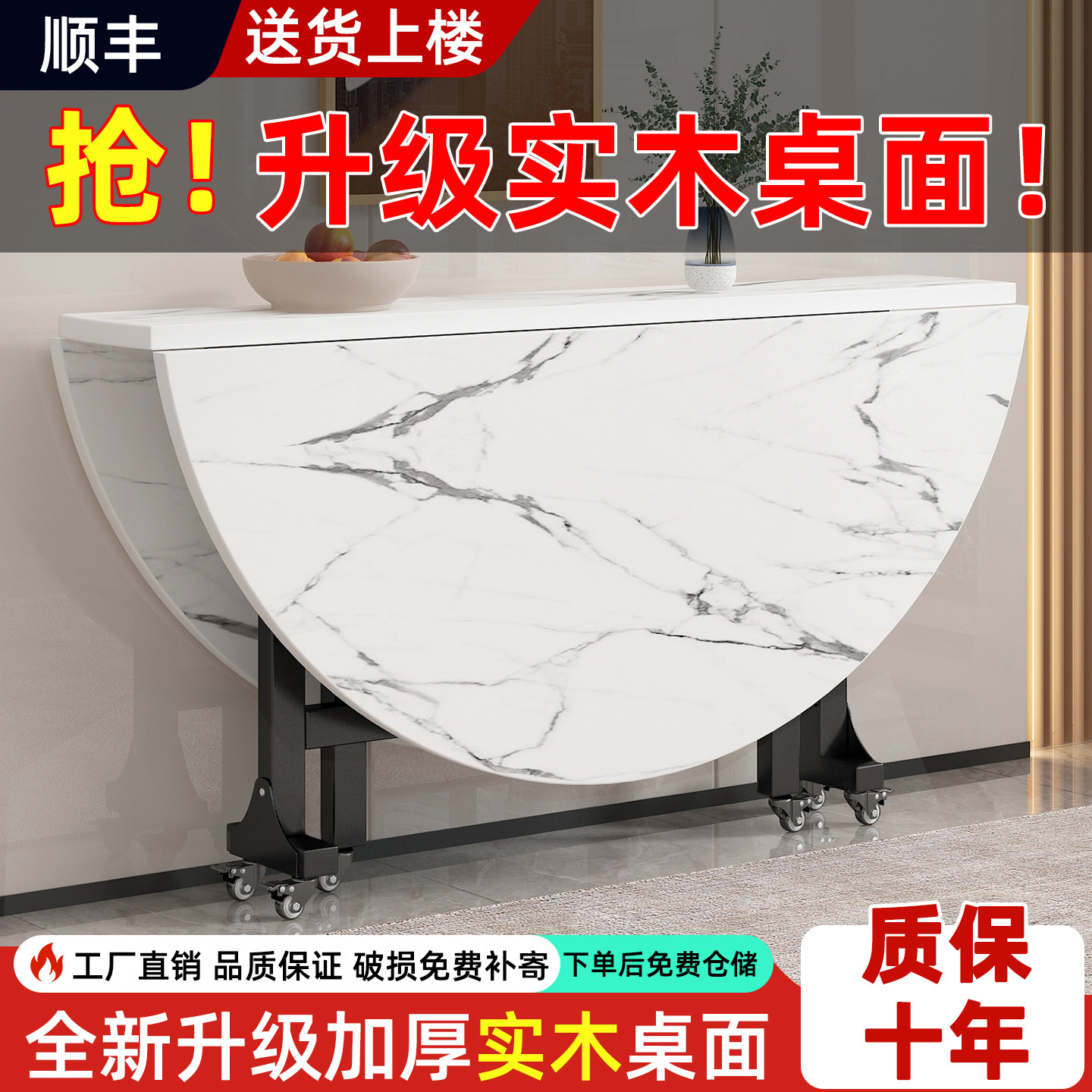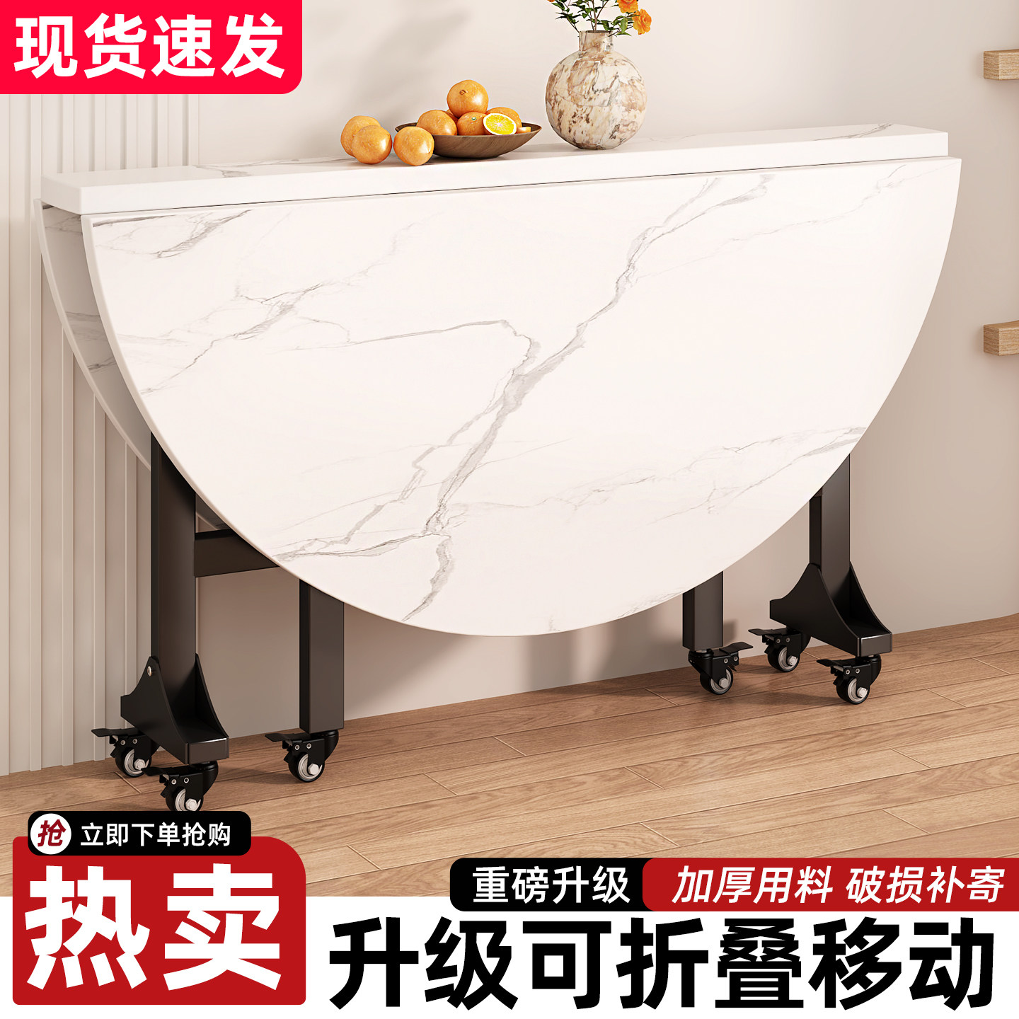 小户型可折叠式岩板餐桌椅组合可伸缩轻奢实木家用吃饭桌子省空间