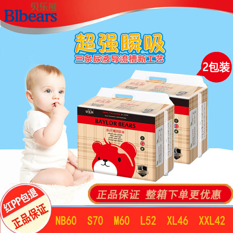 贝乐熊新纤薄纸尿裤呼吸裤NB60S70M60L52XL46/XXL42