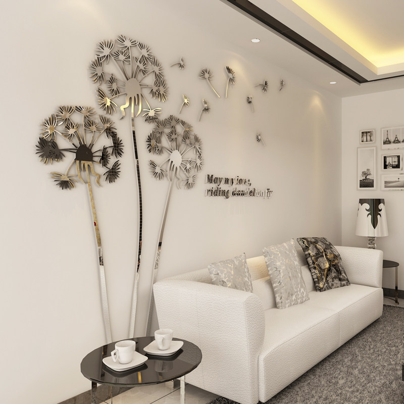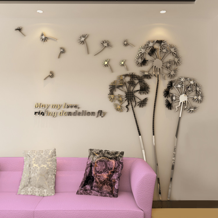 蒲公英3D立体亚克力镜面墙贴创意自粘贴卧室客厅遮丑装饰贴画定制
