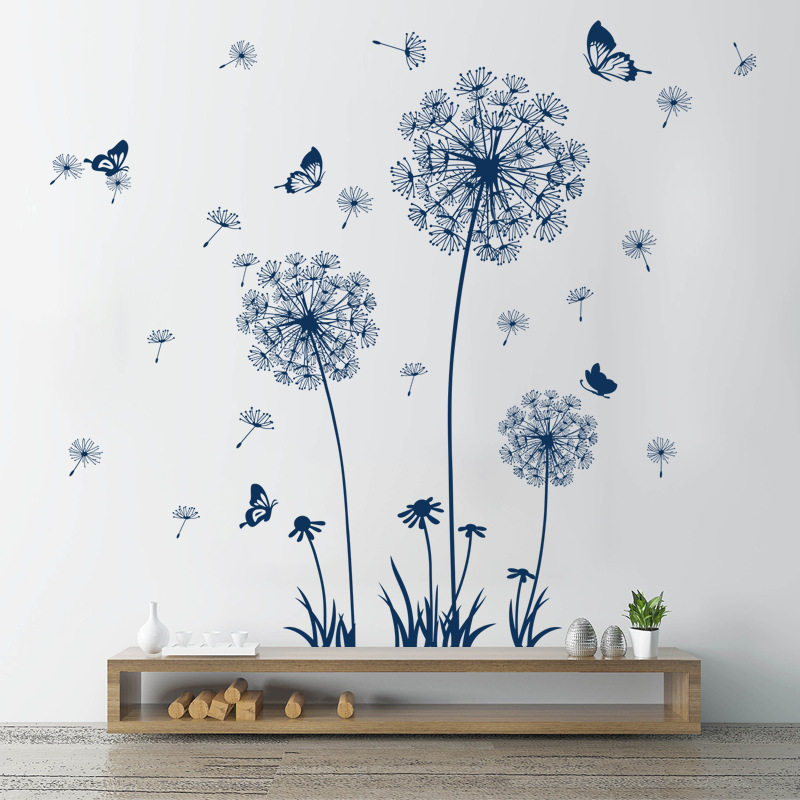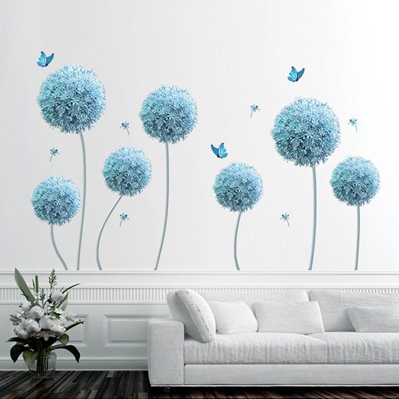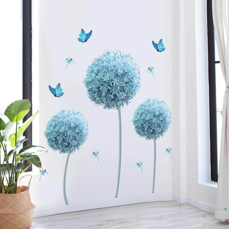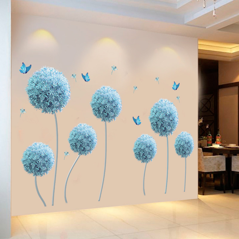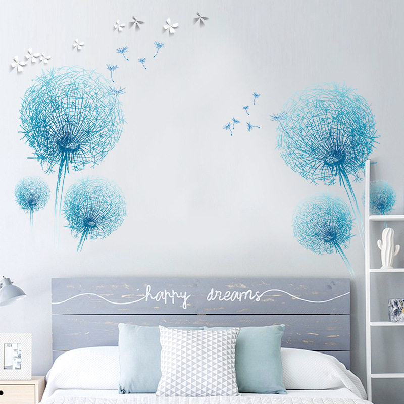蓝色蒲公英墙壁贴画卧室床头房间布置客厅玄关墙面装饰墙贴纸自粘