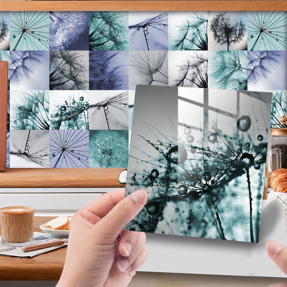 蒲公英露水花纹仿瓷砖贴花砖楼梯厨房卧室浴室遮丑装饰墙贴纸防水