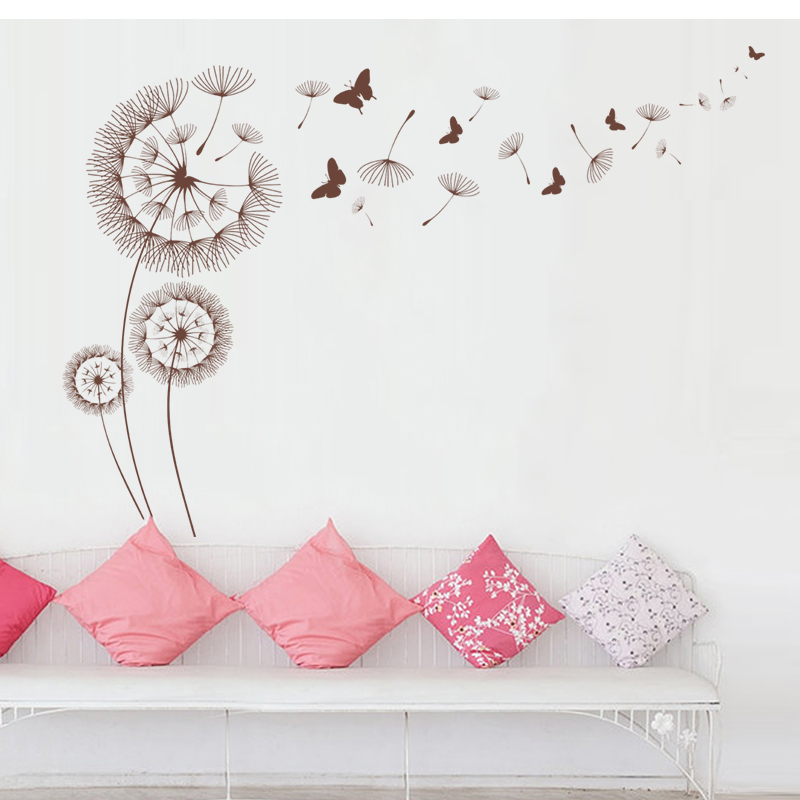 网红款褐色蒲公英墙贴纸客厅卧室床头沙发电视背景墙壁装饰贴画图