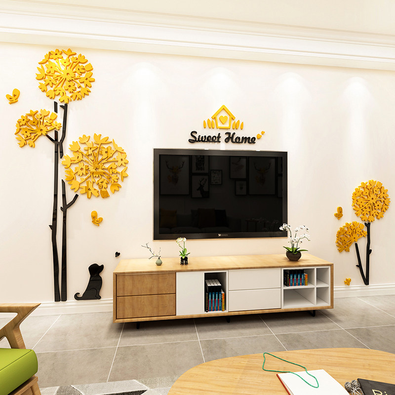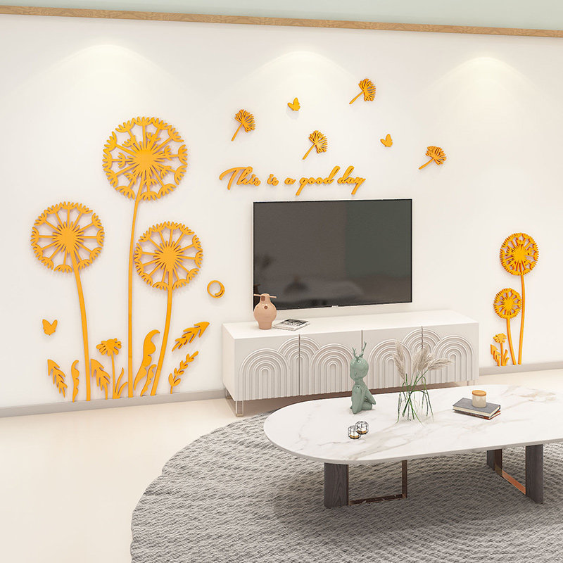 电视机背景墙面贴纸自粘3d立体两侧挂件2026新款画蒲公英点缀装饰