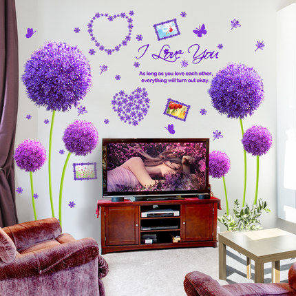 客厅婚房沙发电视背景卧室床头温馨贴花墙壁装饰墙贴纸紫色蒲公英