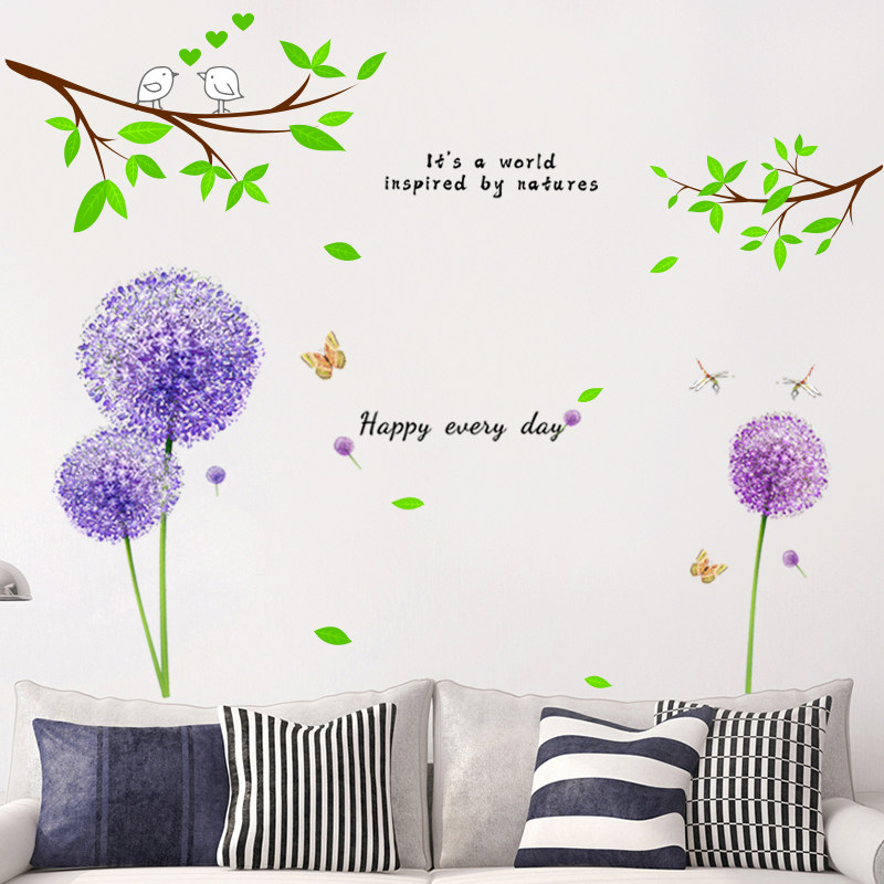 清新客厅墙面布置浪漫紫色蒲公英贴纸简约现代家用房间装饰墙贴画