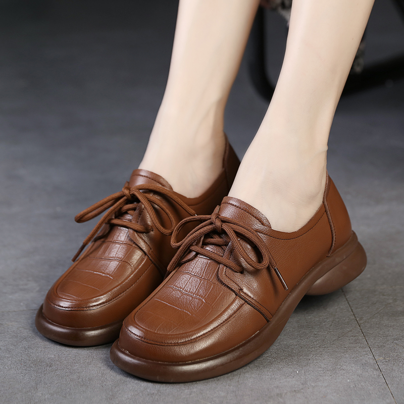 2025春秋季真皮时尚系带平跟女单鞋休闲软底小皮鞋乐福鞋大码4143