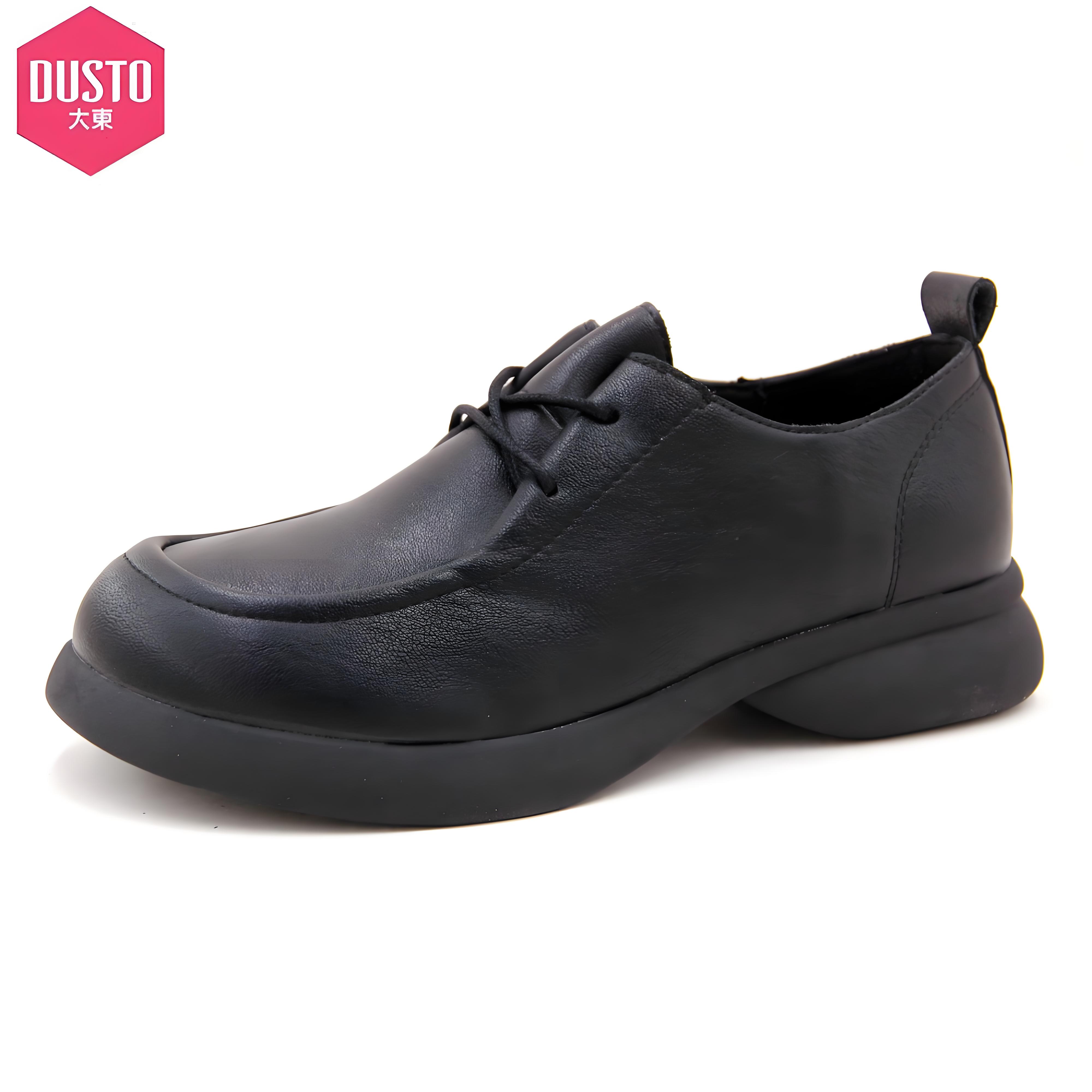 大东女鞋2025新款复古休闲女小皮鞋系带软底圆头平跟单鞋女平底鞋