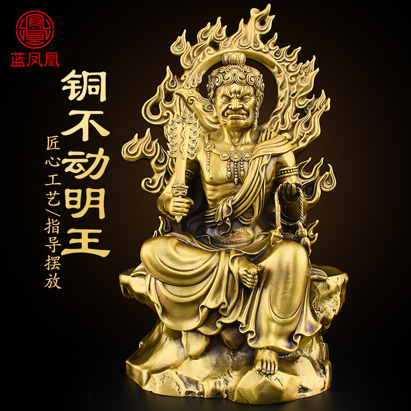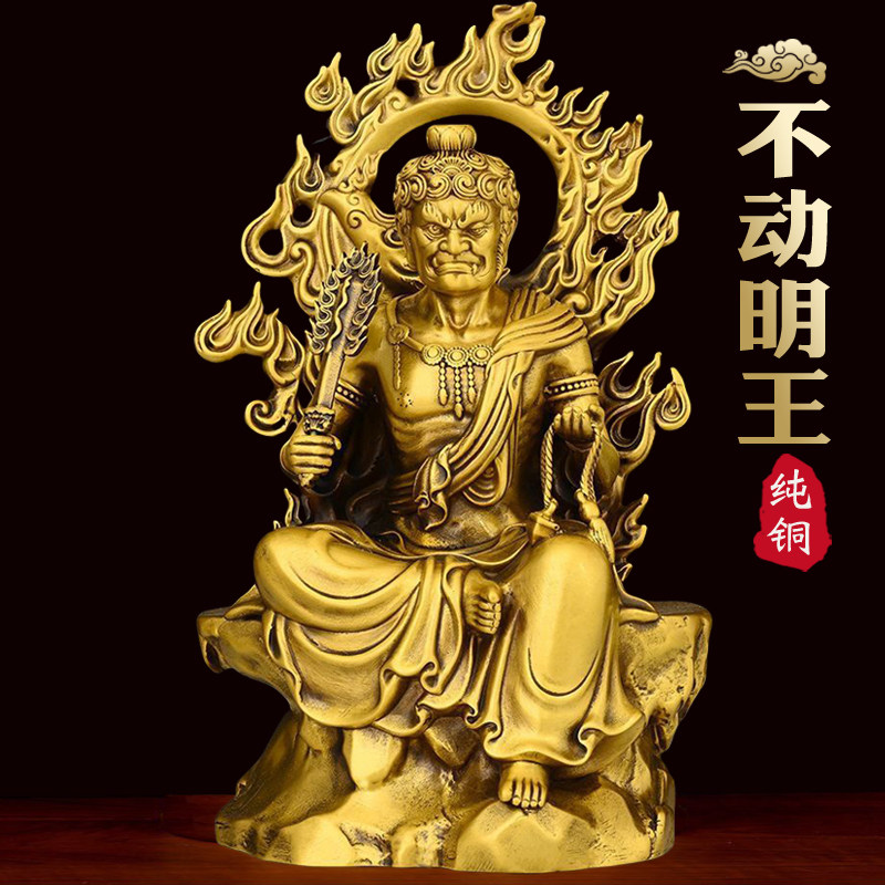 黄铜佛堂供奉摆件不动尊菩萨不动明王冥王佛像属鸡本命佛家居装饰