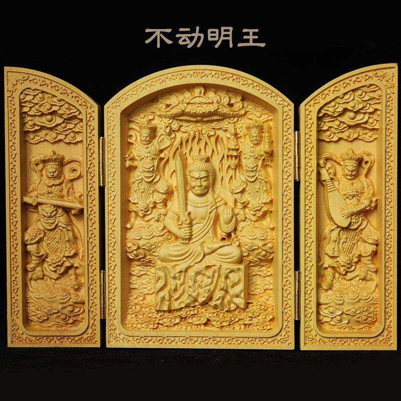 黄杨木八大守护神不动尊菩萨生肖属鸡本命佛不动明王木工艺品摆件