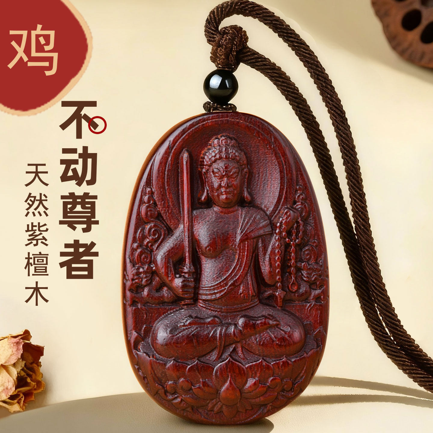 不动明王属鸡不动尊菩萨本命佛吊坠紫檀木十二生肖守护神挂件项链