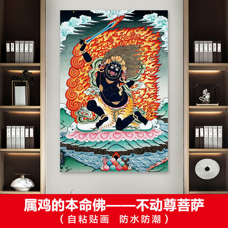 属鸡的本命佛不动尊菩萨画像不动明王生肖守护佛像菩萨自粘墙贴画