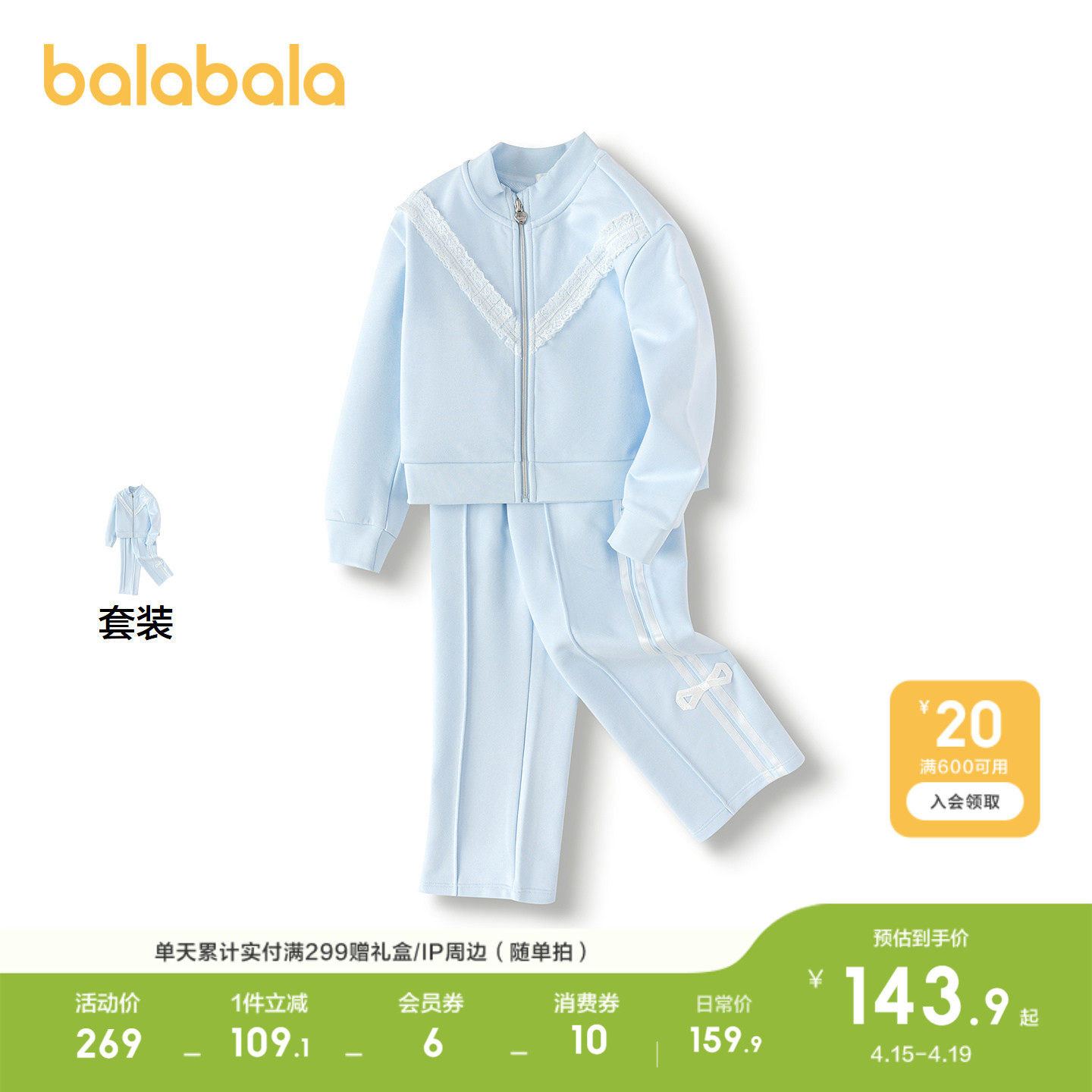 巴拉巴拉童装女童卫衣套装春装针织两件套蝴蝶结蕾丝时尚甜美百搭