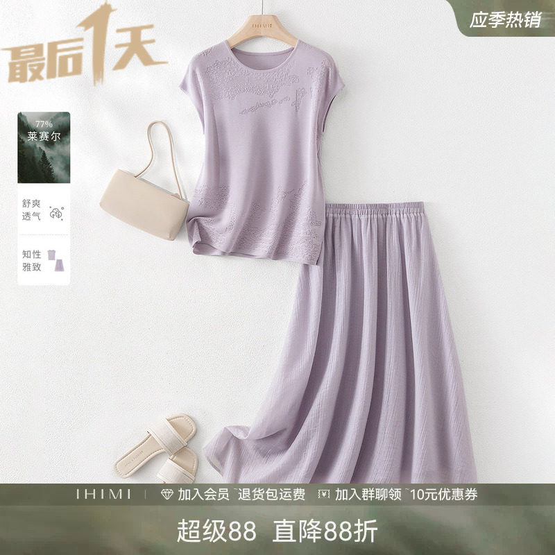 IHIMI海谧高级感轻薄针织T恤透气半身裙两件套女2026夏季时尚套装