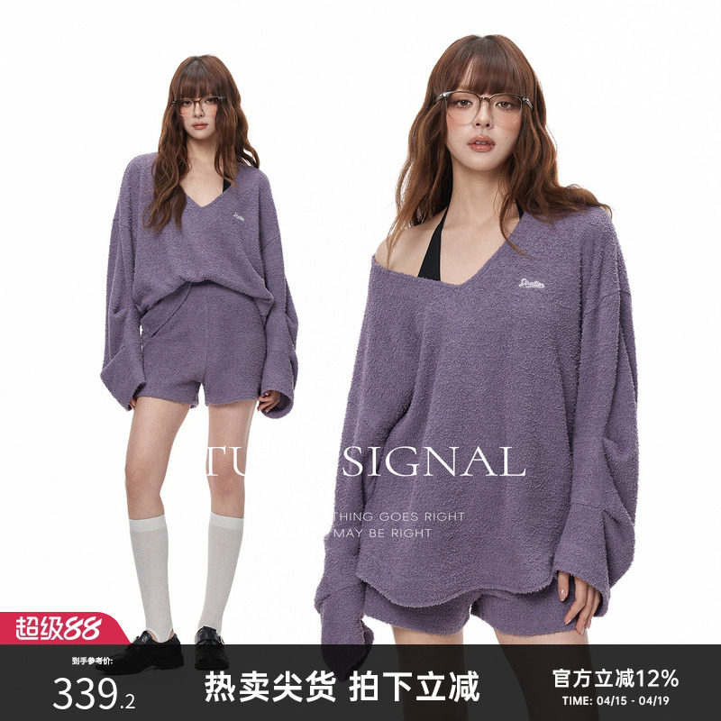 Turn Signal大V领针织T恤短裤套装女2026新款休闲时尚两件套春秋