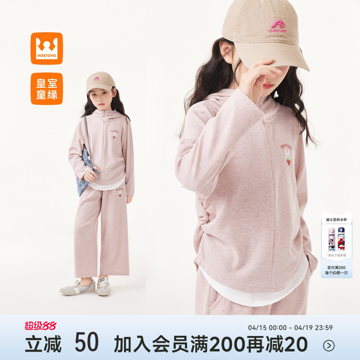 皇室童缘女童时尚套装26春新款儿童针织连帽卫衣裤子两件套中大童