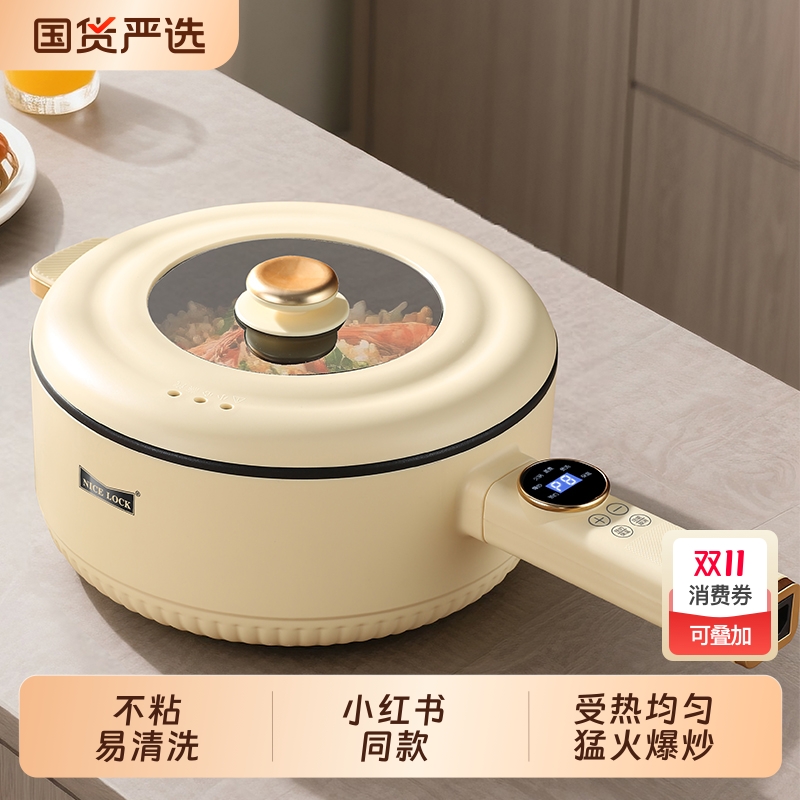 电煮锅宿舍学生锅家用小电锅多功能电炒菜炒锅一体煮面锅电热火锅